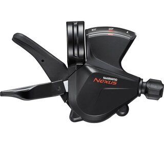 SHIMANO NEXUS - RAPIDFIRE PLUS - Schakelversteller voor INTER-3 naaf De SHIMANO NEXUS SL-C2010-3 schakelversteller heeft een comfortabele, ergonomische hendelvorm en zorgt voor intuïtief en direct schakelen. De RAPIDFIRE PLUS schakelversteller biedt een soepele multishift-werking en een lichte schakelbediening. Daarnaast is de versteller voorzien van SHIMANO's OPTICAL GEAR DISPLAY, dat fietsers laat zien in welke versnelling ze rijden. Gestroomlijnd bedieningsgedeelte Versnellingsindicator gepositioneerd onder het stuur De versnellingsindicator geeft de versnellingsstand in één oogopslag aan OPTICAL GEAR DISPLAY Lichte schakelbediening Geoptimaliseerde hendelslag voor een lichte werking Slanke behuizing van de hoofdversteller RAPIDFIRE PLUS Compatibel met INTER-3 interne naafversnelling SG-3D55/SG-3R40/SG-3C41 Product specificaties: Model: SL-C2010-3 Serie: NEXUS INTER-3 Kleur: Zwart Klemdiameter (mm): 22.2 Max. aantal schakelstappen tegelijk (hoofdversteller/achter):1 Optisch schakelscherm: onder de stuurbuis Versnellingen achter: 3 Aanbevolen SL buitenste verzilvering : SP buiten voor IHG SL kabelafstelling: Ja Type schakelversteller: RAPIDFIRE PLUS